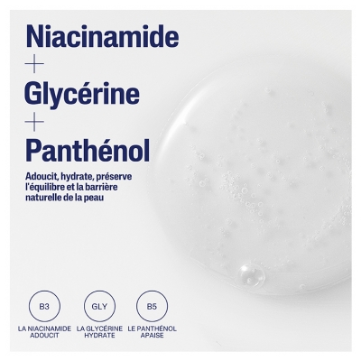 Formulated with vitamin B3 and provitamin B5, it protects against 5 signs of sensitive skin: weakened skin barrier, irritation, dryness, roughness and tightness. It helps preserve the skin’s natural balance and barrier.